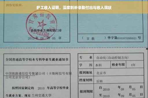 摘要:本篇内容主要关于护工的收入证明,深入剖析了护工的辛勤付出与当前的收入现状。通过简洁明了的文字,揭示了护工们在繁重工作负担下所得到的收入情况,并呼吁社会更加关注和重视这一群体的付出与权益。