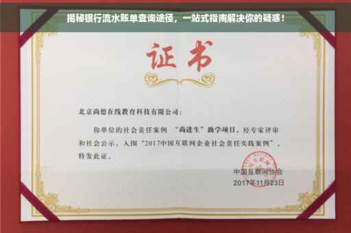 摘要:本文将为你揭秘银行流水账单查询的途径,解决你的疑惑。通过简单的步骤,你可以轻松查询银行流水账单,了解账户交易明细。本文将为你提供一站式服务,让你轻松掌握查询方法,方便快捷地管理你的财务。