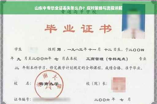 摘要:关于山东中专毕业证丢失问题,应对策略与流程解析如下。毕业生需及时到原发证机构进行挂失和登记,获取相关证明。随后,按照学校或教育部门的规定,提交必要的身份及学历证明材料进行补办申请。流程包括在线填写补办申请表、提交个人身份证明及近期照片等。整个流程需严格遵守时间限制,以免耽误个人发展。成功补办后,毕业生可重新获得毕业证书。