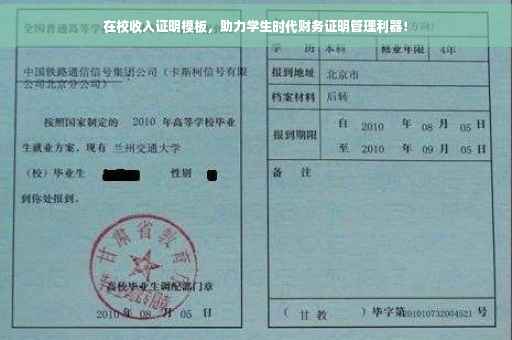 随着时代的发展,越来越多的学生在校期间就开始接触各种兼职工作、实习机会以及奖学金等收入来源,在校收入证明作为反映学生在校期间经济收入状况的重要文件,对于申请各类贷款、参与社会实践、求职就业等方面具有举足轻重的地位,本文将提供一个在校收入证明模板,并详细阐述其使用场景、填写要点及注意事项,以期帮助学生朋友们更好地管理自己的财务证明。