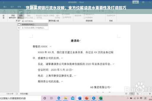 通过本文的分享,您已经了解了贷款买房银行流水的重要性及打造方法,在申请贷款前,务必做好充分的准备,保持稳定的收入和良好的信用记录,合理规划支出,打造一份满意的银行流水,注意流水的真实性、持续性和配合调查等方面的问题,希望本文能为您的贷款买房之路提供有益的帮助,也要注意收集并整理其他贷款所需材料,以确保申请流程的顺利进行。