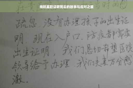 摘要:,,本文探讨了员工拖延离职证明书背后的故事以及应对之策。这种现象可能涉及员工与前公司之间的纠纷、个人原因或其他复杂因素。为了解决这个问题,公司可以采取积极的沟通策略,与员工坦诚交流,明确离职流程和期限。提供必要的支持和帮助,确保员工顺利过渡。对于员工的个人原因,建议积极寻求解决方案,避免不必要的纠纷。双方应以合作共赢的态度,共同维护良好的工作环境和关系。