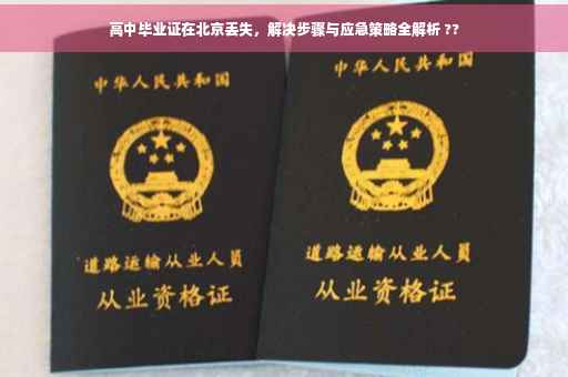 摘要:高中毕业证丢失在北京,不必慌张。联系原毕业学校,获取相关证明文件。前往所在区教育部门进行档案查询和补办申请。登报声明原毕业证遗失并保留相关证明。准备必要材料,前往教育部门办理新的毕业证。应对策略需保持冷静,及时采取行动,确保不影响个人发展。