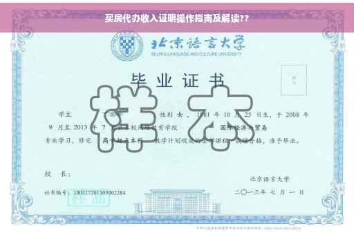 摘要:本指南旨在全面解读买房代办收入证明的相关事项。内容包括如何准备材料、填写申请表格、注意事项等。通过本指南,您将了解如何合法合规地办理买房收入证明,确保顺利购房。本服务为您提供一站式操作指导,让您轻松应对购房过程中的各种挑战。