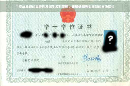 摘要:中专毕业证对于个人职业发展具有重要意义,但在实际生活中,由于各种原因可能会出现遗失的情况。面对中专毕业证丢失问题,个人应及时采取措施进行应对,如联系学校进行补办或提供相关证明文件等。正确处理中专毕业证丢失问题,有助于个人职业生涯的顺利发展。