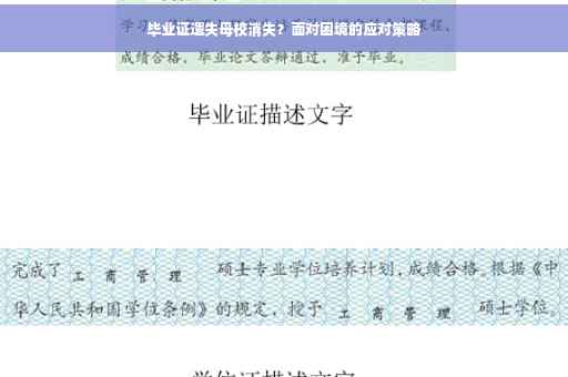 面对毕业证丢失和母校消失的情况,我们需要保持冷静和乐观的态度,我们可以通过联系学校、校友、教育部门等途径寻求帮助,同时养成备份重要文件的习惯,希望这篇文章能够帮助你在面对这类困境时找回自信和勇气,困难只是暂时的,只要我们积极寻找解决方案,就一定能够克服困难。