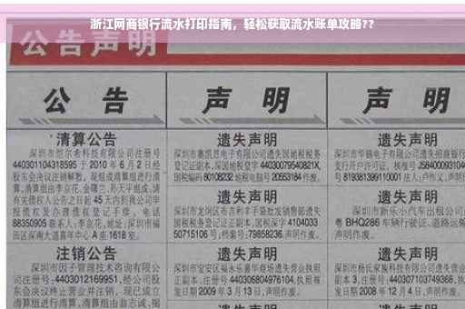 摘要:本文将为你提供浙江网商银行流水打印的详细攻略。通过简洁明了的步骤,让你轻松掌握如何打印银行流水。无论是个人还是企业,都能快速完成流水账单的打印,方便你进行财务管理或证明资金往来。跟随攻略,轻松操作,让你的银行流水打印变得简单高效。
