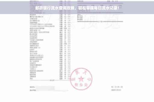 通过本文的介绍,您应该已经了解了如何通过网上银行、手机银行以及柜台查询邮政银行一天的流水,请根据自身情况选择合适的方式进行查询,轻松管理个人账务,在使用过程中,如有任何疑问或需要帮助,欢迎随时联系邮政银行的客服人员,我们将竭诚为您服务。