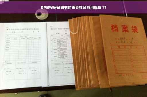 在当今信息化社会,随着电子商务的迅猛发展,EMS(邮政特快专递服务)投寄证明书的需求日益凸显,EMS作为一种高效快捷的物流方式,广泛应用于个人、企业间的文件、物品传递,本文将详细介绍EMS投寄证明书的作用、重要性及其实际应用场景,帮助大家更好地了解这一服务。