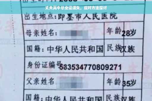 面对丈夫高中毕业证丢失的情况,我们需要保持冷静,了解丢失情况并寻找解决方案,可以通过联系学校、提供证明文件、咨询教育部门等方式来解决问题,在解决问题后,还需要备份所有重要的证件,以便随时查看和使用,希望本文能够为你提供一些实用的建议,帮助你应对类似的情况。