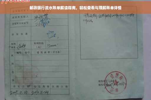 通过本文,我们了解了如何通过邮政银行查询流水账单,并学会了如何解读流水账单中的各项信息,希望读者能够更好地管理个人财务,合理规划未来,在实际操作中,如遇问题,建议及时联系邮政银行客服或前往柜台咨询。