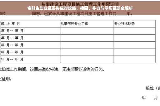 在这个快节奏的时代,我们可能会遇到各种意外情况,其中之一就是证件丢失,对于专科生来说,毕业证是学业成果的重要证明,一旦丢失可能会给求职、升学等带来诸多不便,如果不幸遇到专科毕业证丢失的情况,应该如何应对呢?下面为你提供详细攻略,帮助你找回、补办或证明你的学历之路。