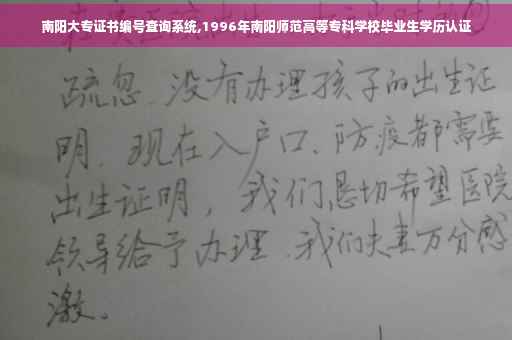 答案公式1:1996年南阳师范高等专科学校的毕业生可以进行学历认证。
