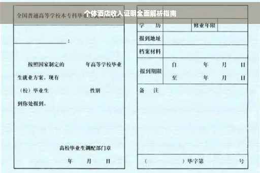 个体酒店收入证明是展示酒店经营状况和信用等级的重要依据,通过本文的介绍,希望个体酒店经营者能更好地了解和应对收入证明的相关需求,为酒店的持续发展提供有力支持。