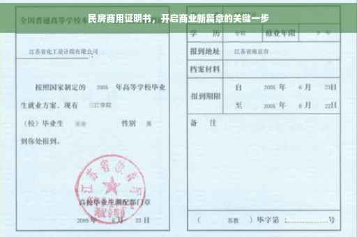 民房商用证明书是房屋用途变更的法定证明,也是商家合法经营的凭证,在申请商业许可证、税务登记、银行开户等过程中,民房商用证明书都是不可或缺的资料,拥有民房商用证明书可以提高商家的信誉度,为消费者提供更安心的购物环境。