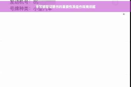 手写暗股证明书作为暗股交易的重要凭证,具有保障双方权益、增强信任度的重要作用,在撰写证明书时,应注意选用合适的纸张、填写规范、签署双方信息准确等事项,本文提供的操作指南可以帮助读者更好地了解和使用手写暗股证明书,确保暗股交易的顺利进行,希望通过本文的介绍,读者对手写暗股证明书有更深入的了解,并在实际操作中加以应用。