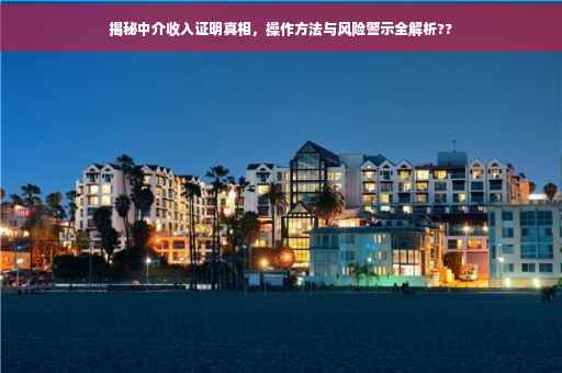 摘要:本文将揭示中介收入证明背后的真相,探讨其操作方式和存在的风险。通过深入了解,我们发现中介收入证明涉及复杂的操作过程,包括提供虚假证明、夸大收入等。这种行为存在巨大的风险,可能导致法律纠纷、信誉受损等后果。提醒广大公众在使用中介服务时,务必谨慎选择,避免陷入不必要的风险。