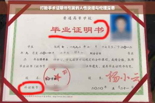 一则关于“打胎手术证明书”的新闻引发了社会各界的广泛关注与热议,随着社会的开放与观念的转变,打胎手术逐渐成为了公众关注的焦点话题,在此背景下,本文将围绕这一主题展开探讨,试图从人性抉择与伦理思考的角度,阐述对这一事件的看法与思考。