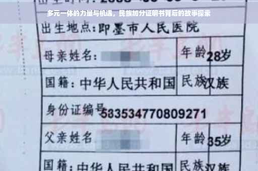 随着社会的快速发展,多元文化的融合与共生已成为时代的主题,在我国,民族加分政策作为促进民族团结、推动少数民族地区发展的措施之一,备受关注,本文将深入探讨民族加分证明书的背后故事,揭示其背后的意义与价值,以及所带来的机遇与挑战。