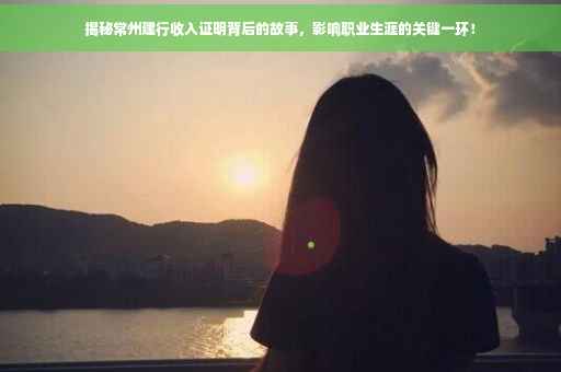 摘要:本文将揭示常州建设银行收入证明背后的故事,探究一份收入证明如何对职业生涯产生深远影响。通过深入了解,发现收入证明不仅是衡量个人经济能力的标准,更是职业生涯发展的关键因素。本文将探讨其背后的原因和影响,引发读者对于个人职业发展与收入证明之间关系的思考。