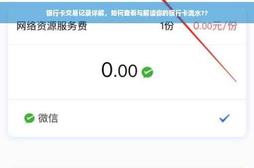 通过定期检查银行卡流水,你可以及时了解自己的财务状况,如发现异常情况,及时处理并调整财务规划。