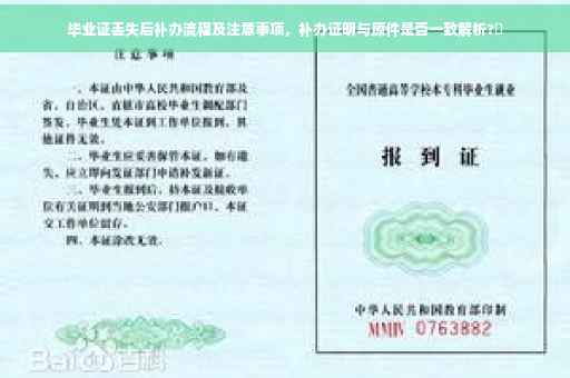 摘要:毕业证丢失后,补办证明与原件具有同等效力。补办流程包括联系学校教务处或相关部门,提交补办申请及相关证明材料,经过审核后支付相应费用,并等待一定时间领取新的毕业证。在补办过程中,需要注意保留相关证明材料,及时与学校沟通,确保信息准确。补办证明与原件在内容上一致,但注明“补发”字样。
