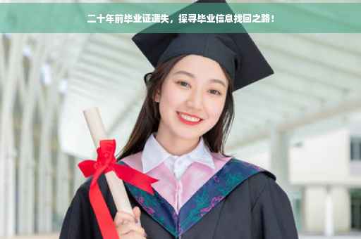 二十年前毕业证丢失,想要找回毕业信息,可以尝试联系原毕业学校或所在地的教育部门,提供相关证件和身份信息以进行核实。还可以寻求档案服务机构协助查找。若确认无法找回原件,可申请学校出具相关证明,证明毕业信息真实有效。