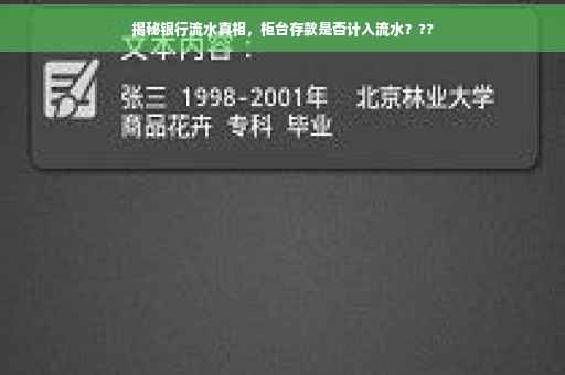当我们谈论银行业务时,银行流水是一个不可避免的话题,对于许多人来说,银行流水不仅仅是记录资金进出的账单,更是办理贷款、信用卡等金融业务的重要参考依据,银行卡柜台存款是否算作流水呢?本文将详细解析这一问题,并探讨银行流水的相关知识。