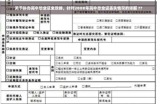 摘要:本文将详细介绍关于补办高中毕业证的相关事项,特别是针对2008年高中毕业证丢失的情况。文章涵盖了补办流程、所需材料、注意事项等方面,为读者提供了全面的指导。如果你不幸丢失了高中毕业证,不要担心,通过本文你可以了解到如何合法、有效地进行补办,确保个人学业和职业发展不受影响。