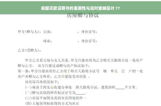在当今社会,随着信用体系的日益完善,个人信用记录的重要性愈发凸显,逾期还款作为不良信用行为,不仅影响个人信用,还可能引发一系列连锁反应,这时,逾期还款证明书的作用便显得尤为重要,本文将详细介绍逾期还款证明书的含义、作用,以及个人和金融机构在面对逾期还款证明书时的策略和方法。