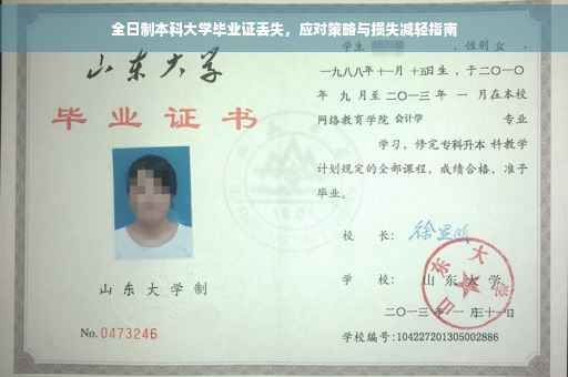 摘要:面对全日制本科大学毕业证丢失的问题,应首先保持冷静,及时采取措施减少损失。可通过联系学校教务处或毕业办,了解补办流程及相关证明材料,提交必要的证件和证明进行补办。也可通过登报声明原证书作废,避免被他人冒用造成不必要的麻烦。备份电子档或复印件等备份材料以防万一,并妥善保管个人重要证件资料。