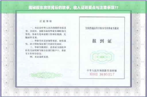 在当今社会,随着房价的不断上涨,越来越多的股东们也开始考虑申请房贷,而申请房贷时,收入证明是非常重要的一环,本文将围绕股东房贷收入证明这一主题,深入探讨背后的故事以及需要注意的事项,帮助读者更好地了解这一过程中的关键信息。