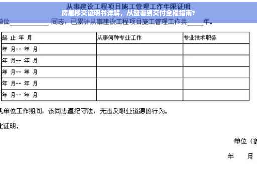 在当今社会,随着房地产市场的繁荣和发展,房屋交易日益频繁,在房屋交易过程中,房屋移交证明书是一个重要的环节,本文将详细介绍房屋移交证明书的相关知识,帮助读者更好地了解这一环节的具体内容和注意事项。