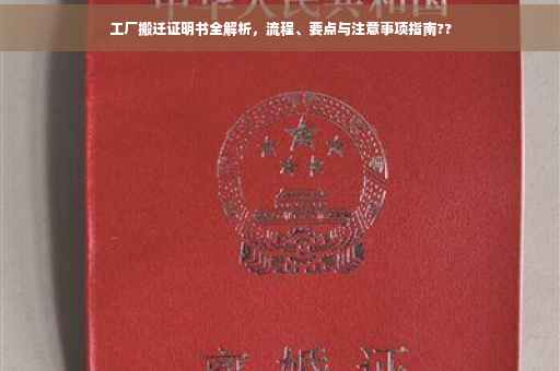 随着社会经济形势的不断变化,企业因扩大生产规模、优化资源配置等原因,可能需要将工厂从一个地方搬迁到另一个地方,在这个过程中,工厂搬迁证明书作为证明工厂搬迁事实的重要文件,其撰写与办理显得尤为重要,本文将详细介绍工厂搬迁证明书的撰写要点、办理流程以及注意事项,帮助企业在搬迁过程中避免不必要的麻烦。