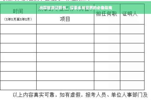 就是关于出国旅游证明书的详细介绍,希望本文能为您的出国旅游提供有益的指导和帮助,在旅行过程中,如有任何疑问或问题,请及时联系旅行社或相关机构寻求帮助,祝您旅途愉快,满载而归!