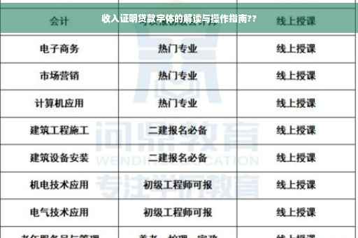 在现代社会,贷款已成为人们解决资金周转问题的一种常见方式,而在申请贷款的过程中,收入证明是评估个人信用和还款能力的重要依据,本文将详细介绍收入证明贷款字体的相关知识,帮助大家了解如何正确出具收入证明,以便顺利申请贷款。