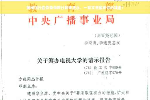 随着金融科技的飞速发展,银行业务日趋多元化,人们对于金融信息的查询需求也不断增长,跨行转账流水查询是常见的需求之一,很多人在处理金融事务时,会有一个共同的疑问:银行能否查询其他行的转账流水?本文将围绕这一问题展开讨论,帮助读者更好地理解相关金融知识。