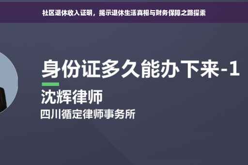 随着社会的进步和人口老龄化趋势的加剧,社区退休收入证明逐渐成为公众关注的焦点,这一证明作为衡量退休人员生活质量的重要指标之一,反映了退休人员的主要收入来源和收入水平,本文将深入探讨社区退休收入证明的内涵、作用,以及如何合理规划退休生活,确保一个美好的晚年愿景。