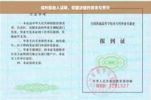摘要:信托假收入证明是一种违法行为,游走于犯罪边缘。这种行为不仅欺骗了相关机构,还可能给自己带来严重的法律后果。我们应当警惕这种行为,遵守法律法规,维护社会公平正义。真实收入证明是评估个人信用和财务状况的重要依据,任何虚假证明都会破坏社会信任体系。我们应该诚信守法,远离犯罪边缘,共同营造诚信社会。