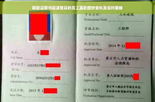 摘要:员工离职后的微妙变化及应对之策。针对员工辞职证明书回退的情况,需关注员工离职后的心态变化、工作交接及后续关系处理。为应对这些变化,企业应关注员工离职原因,做好沟通工作,确保工作交接无误,同时保持一定的联系,为未来可能的合作留下空间。辞职证明书回退是员工离职过程中的重要环节,需妥善处理。