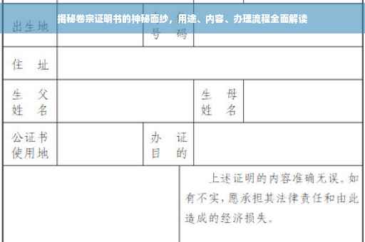 在当前法治社会,法律事务越来越受到公众的关注,卷宗证明书作为法律领域的重要文书,其在各个领域都发挥着不可替代的作用,本文将为您深入解析卷宗证明书的用途、内容以及办理流程,助您更好地了解和运用这一法律文书。