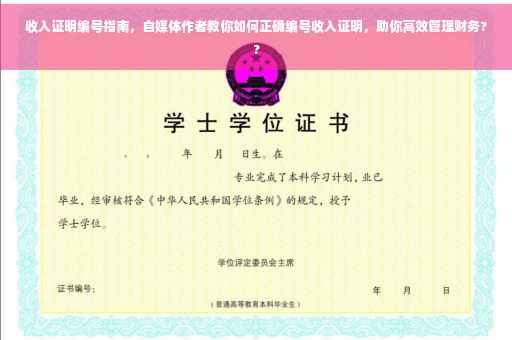 在现代社会中,越来越多的人开始关注个人财务管理,特别是在职场中,收入证明成为了展示个人经济实力和信用状况的重要文件,对于企业和个人而言,如何合理、规范地管理这些证明文件,尤其是为它们进行编号,显得尤为重要,本文将为大家详细介绍如何为收入证明进行编号,帮助大家更好地管理自己的财务文件。
