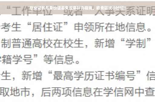 在快节奏的生活中,我们可能会因为疏忽或意外而丢失一些重要的证件,如毕业证书和身份证,这些证件的丢失不仅会影响我们的日常生活,还可能影响我们的工作和发展,当这些意外发生时,我们应该如何迅速有效地进行补办,以减少损失和困扰呢?本文将为您提供详细的指导。