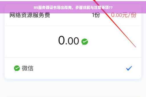 摘要:,,本文介绍了在IIS服务器上导出证书的具体步骤和注意事项。通过遵循一系列操作指南,用户可以轻松导出证书以备不时之需。文章详细解释了每个步骤,并强调了注意事项,以确保在操作过程中避免错误和数据丢失。遵循本文的指导,用户可以成功导出证书并确保服务器安全。