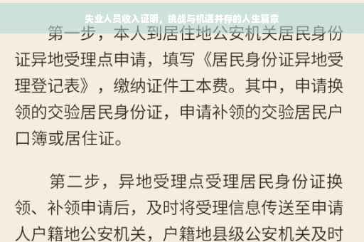 随着时代的发展,失业现象在我们的生活中屡见不鲜,对于失业人员来说,重新获得经济独立和稳定收入是他们面临的重要挑战,本文将深入探讨失业人员的收入证明问题,从多个角度阐述这一现象所带来的挑战与机遇,以期帮助失业人员更好地应对困境,实现再就业。