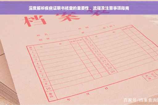 在当今社会,疾病证明书已经成为各个领域的关键文件,不仅用于医疗诊断,更广泛应用于请假、工伤鉴定、保险索赔等方面,疾病证明书的真实性、准确性和可靠性变得尤为重要,这不仅关系到个人的权益保障,更涉及到社会公平与正义,本文将详细解析疾病证明书核查的重要性、核查流程以及需要注意的事项,帮助读者更好地理解和重视这项工作。
