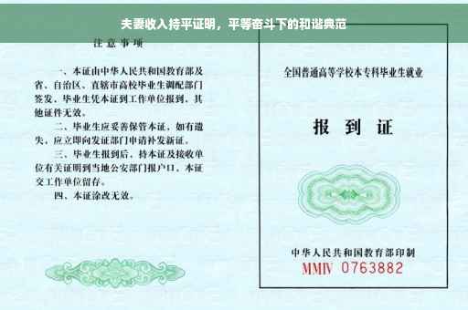 摘要:夫妻收入持平证明体现了共同奋斗下的平等与和谐。双方共同努力,收入相当,共同分担家庭责任,共同享受生活的喜悦。这种平等不仅体现在经济上,更体现在家庭角色、责任和决策中。夫妻携手共进,共同创造美好的未来,展现了现代家庭的典范。