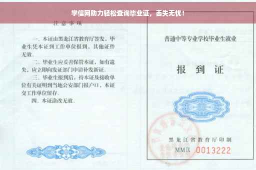 摘要:遇到毕业证丢失的问题不必慌张,学信网为你提供便捷查询服务。通过学信网,你可以轻松查证学历信息,证明你的学业成就。这一在线平台简化了丢失毕业证后的验证流程,让你不再为证明学历而烦恼。无论是个人还是教育机构,都可以便捷地通过学信网核实学历信息,轻松解决毕业证丢失带来的不便。