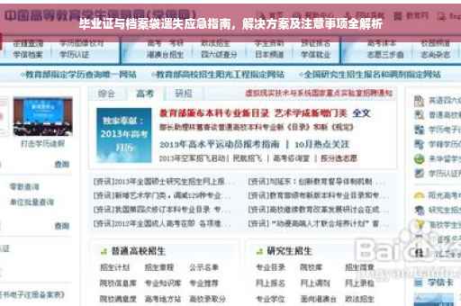 摘要:本指南旨在帮助遗失毕业证和档案袋的个人或组织提供应急解决方案和注意事项。通过本指南,您将了解到如何迅速采取行动,包括报告遗失、寻求补救措施、重新办理证件以及保护个人信息等重要步骤。提醒大家在处理此类问题时需保持冷静,遵循相关流程,确保权益不受损害。