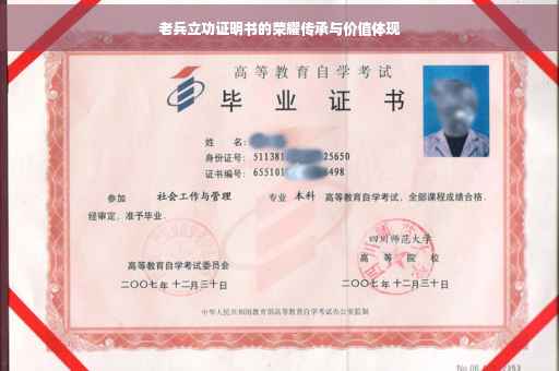 摘要:,,老兵立功证明书的荣耀与传承,彰显了老兵们的英勇事迹和无私奉献。这些证明书不仅是对老兵们过去贡献的认可,更是传承着一种精神,激励后人继续前行。通过这份荣誉,我们铭记历史,致敬英雄,同时也传递着一种信念:无论时代如何变迁,老兵的精神永远值得我们学习和传承。